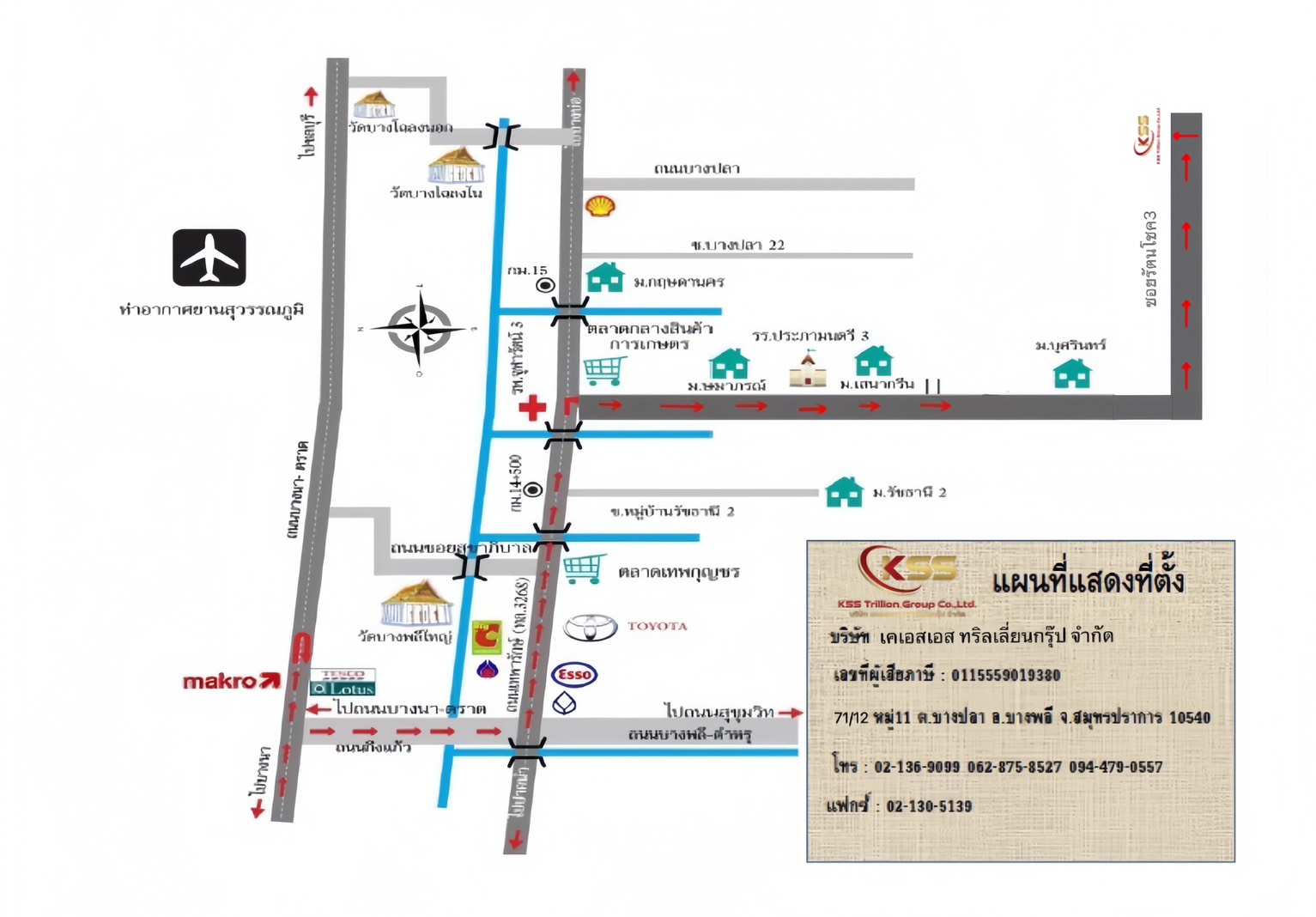 บริษัท เคเอสเอส ทริลเลี่ยนกรุ๊ป จำกัด 71/12 หมู่ที่ 11 ตำบลบางปลา อำเภอบางพลี จังหวัดสมุทรปราการ 10540 ประเทศไทย