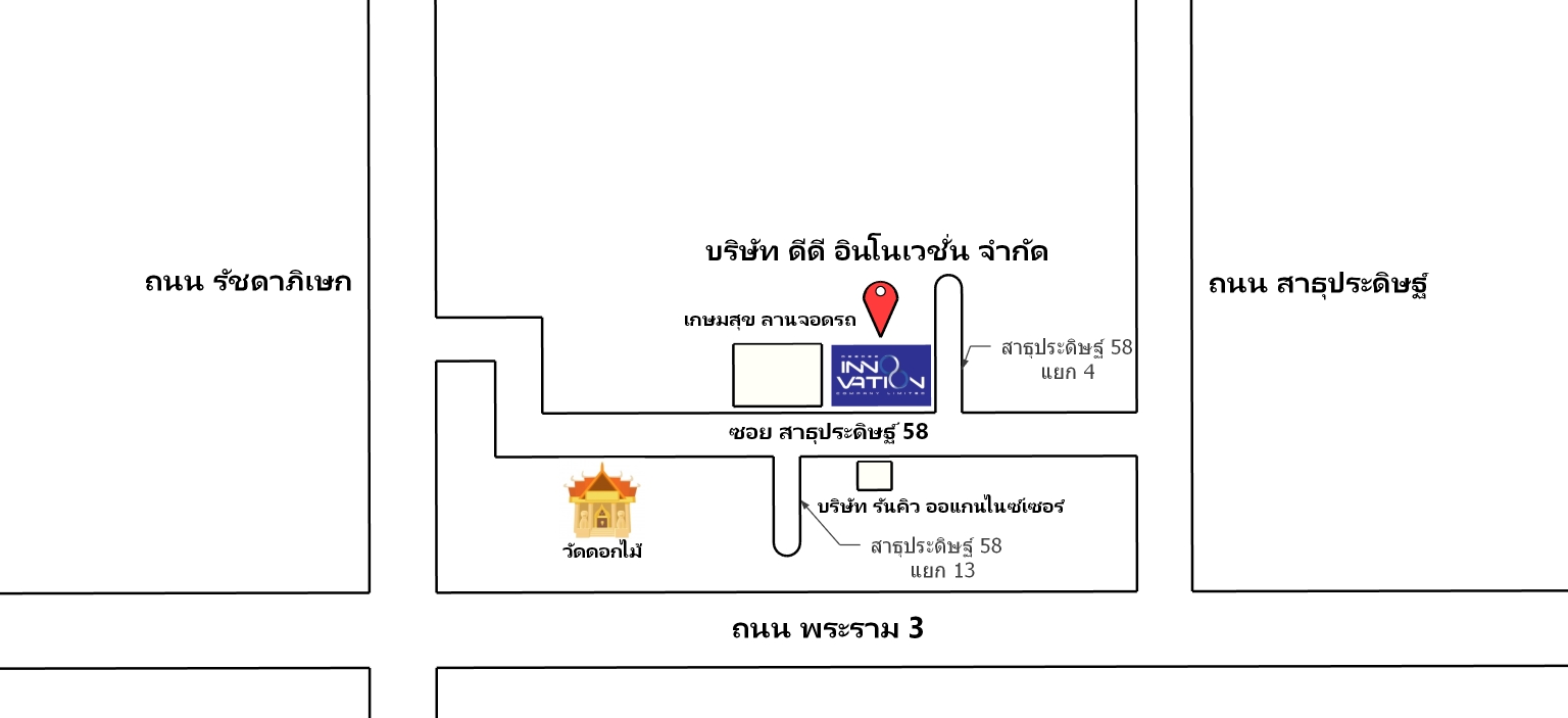 บริษัท ดีดี อินโนเวชั่น 122/1 สาธุประดิษฐ์ 58 แยก 4 แขวงบางโพงพาง เขตยานนาวา จังหวัดกรุงเทพมหานคร 10120 ประเทศไทย