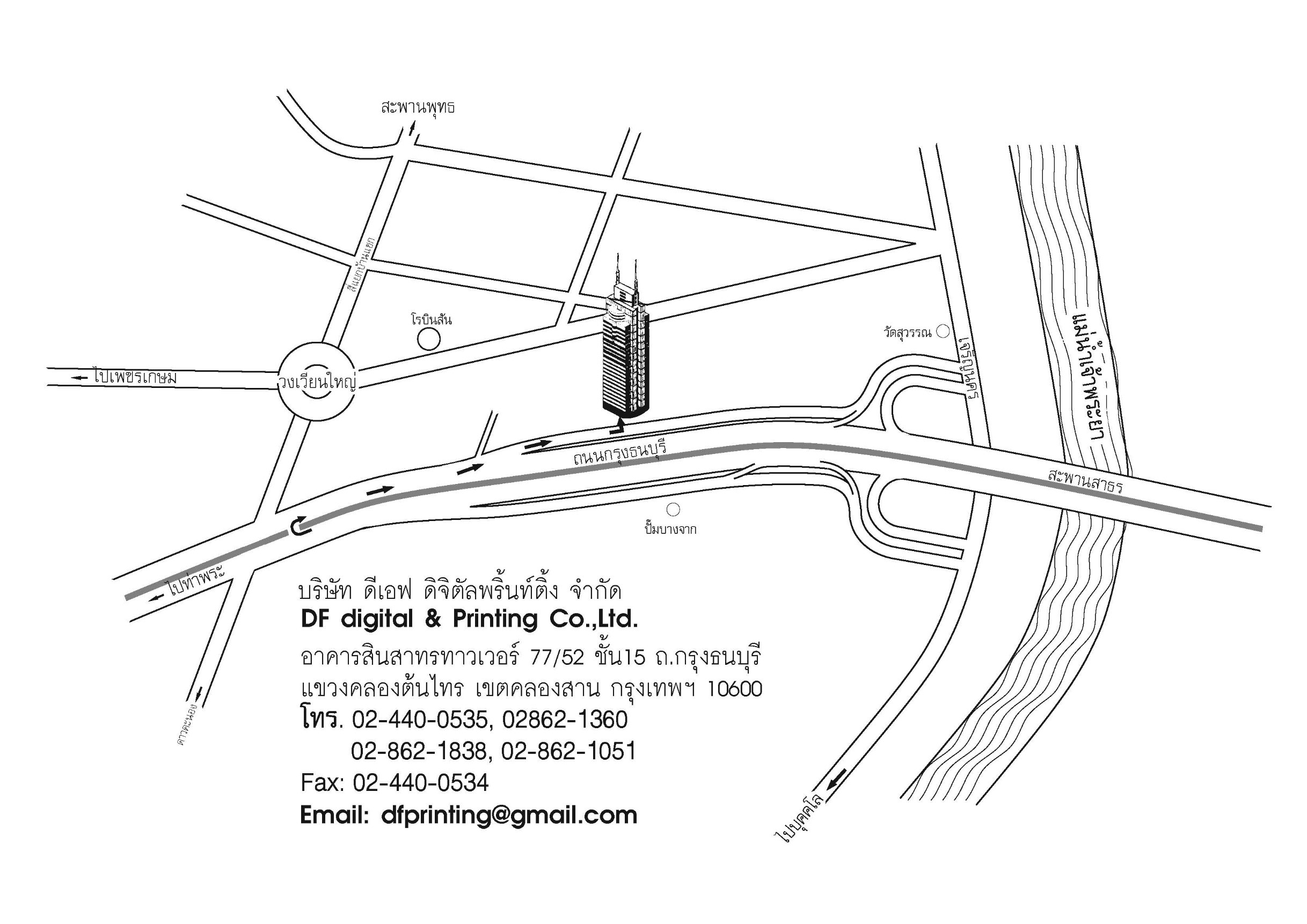 ดีเอฟ ดิจิตัล พริ้นท์ติ้ง จำกัด 77/52 ชั้น15 อาคารสินสาธรทาวเวอร์ แขวงคลองต้นไทร เขตคลองสาน จังหวัดกรุงเทพมหานคร 10600 ประเทศไทย