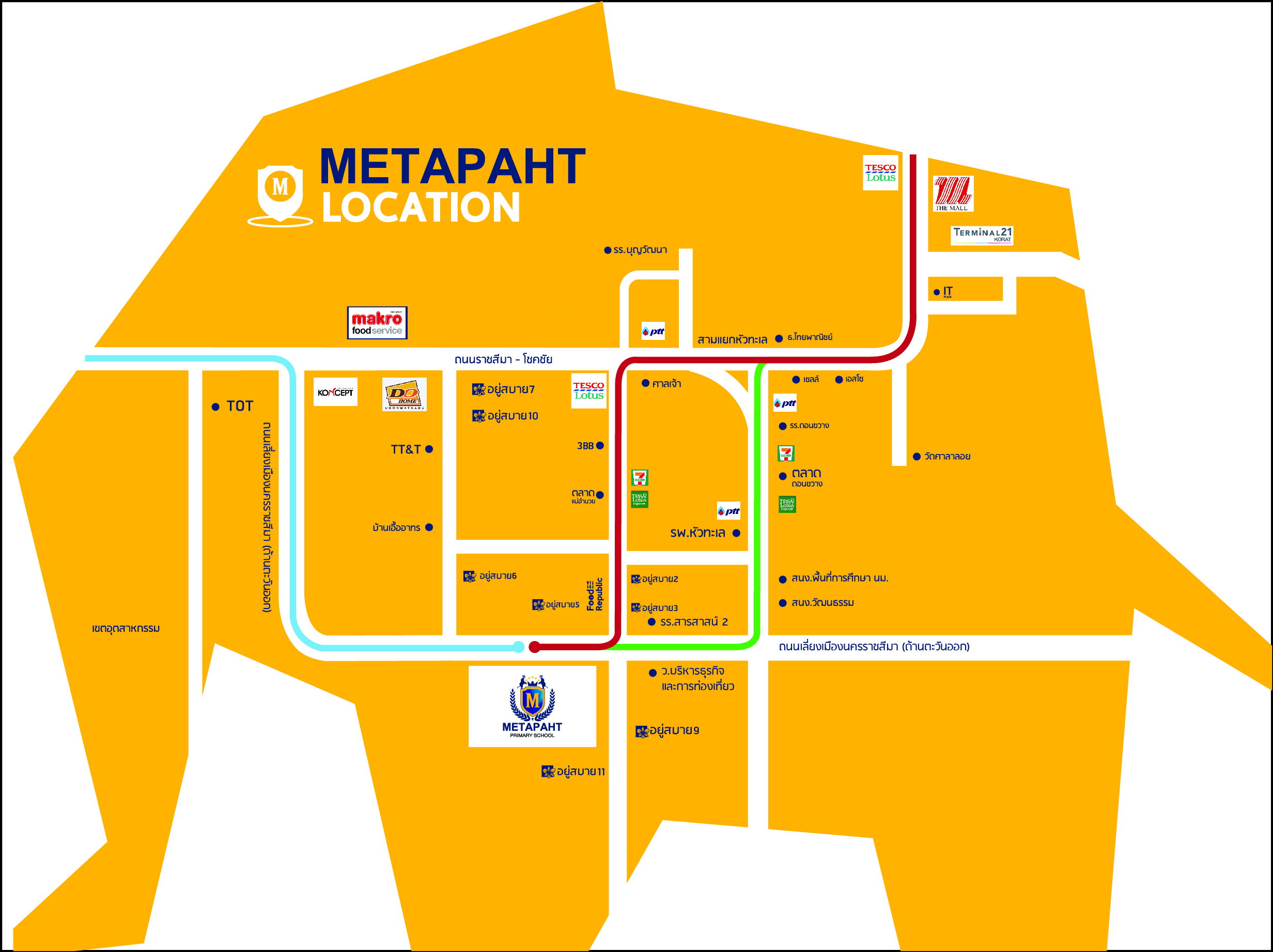 โรงเรียนเมธาพัฒน์ 2222 หมู่ 8 ตำบลหนองบัวศาลา อำเภอเมืองนครราชสีมา จังหวัดนครราชสีมา 30000 ประเทศไทย