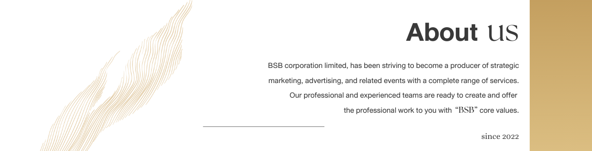 BSB corporation limited, has been striving to become a producer of strategic marketing, advertising, and related events with a complete range of services. Our professional and experienced teams are ready to create and offer the professional work to you with BSB core values.