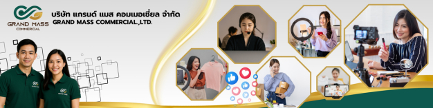 GRAND MASS COMMERCECIAL ,LTD. ประกอบกิจการขาย เสื้อผ้า เครื่องแต่งกายภายใต้แบรนด์ของบริษัท Pisek shop ประกอบกิจการจัดจำหน่ายสินค้าของใช้ในครัวเรือน จัดจำหน่าย สินค้าและบริการผ่านช่องทางออนไลน์ จัดจำหน่ายสินค้าผลิตภัณฑ์ภายใต้แบรนด์ของบริษัท Calxy Go, More Day
