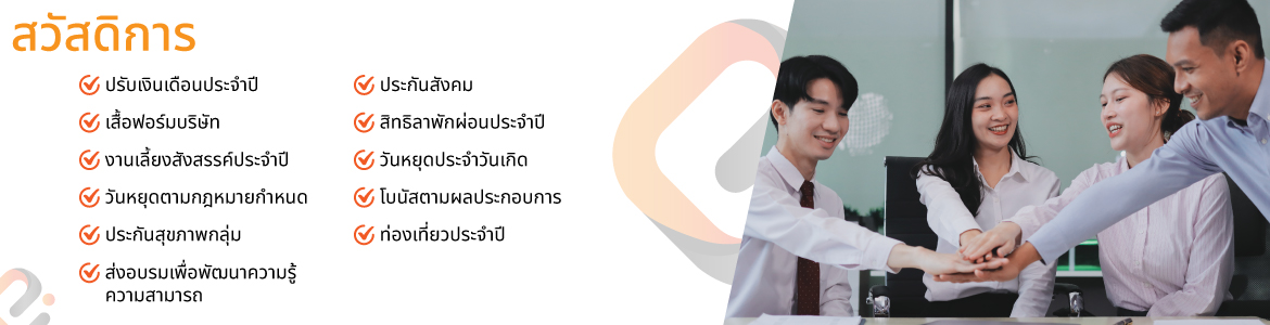สิทธิการลาต่าง ๆ เช่น (ลากิจ 5 วัน/ปี , ลาพักร้อน 10 วัน/ปี , ลาวันเกิด, ลาบวช , แต่งงาน และลาประเภทอื่นๆ )