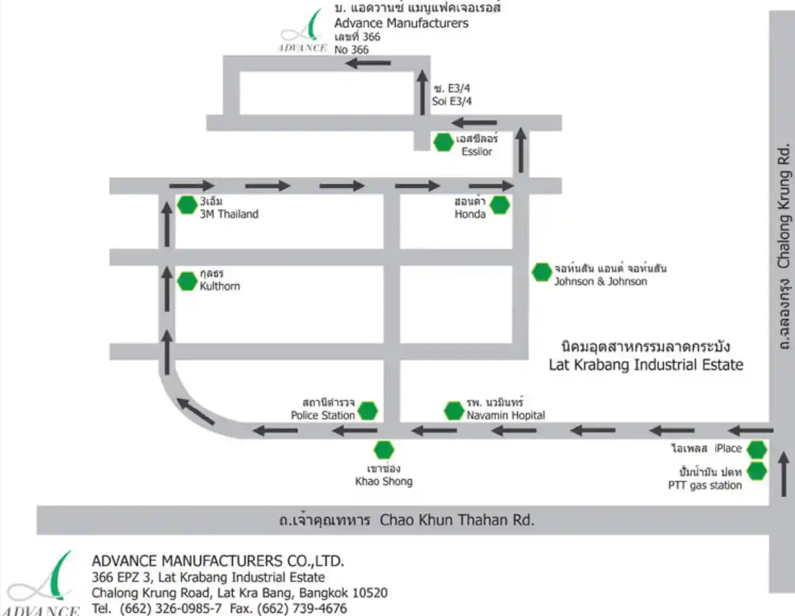 366 นิคมอุตสาหกรรมลาดกระบัง เขตประกอบการเสรี 3 (ซอย E3/8) ถนนฉลองกรุง แขวงลำปลาทิว เขตลาดกระบัง จังหวัดกรุงเทพมหานคร 10520 ประเทศไทย