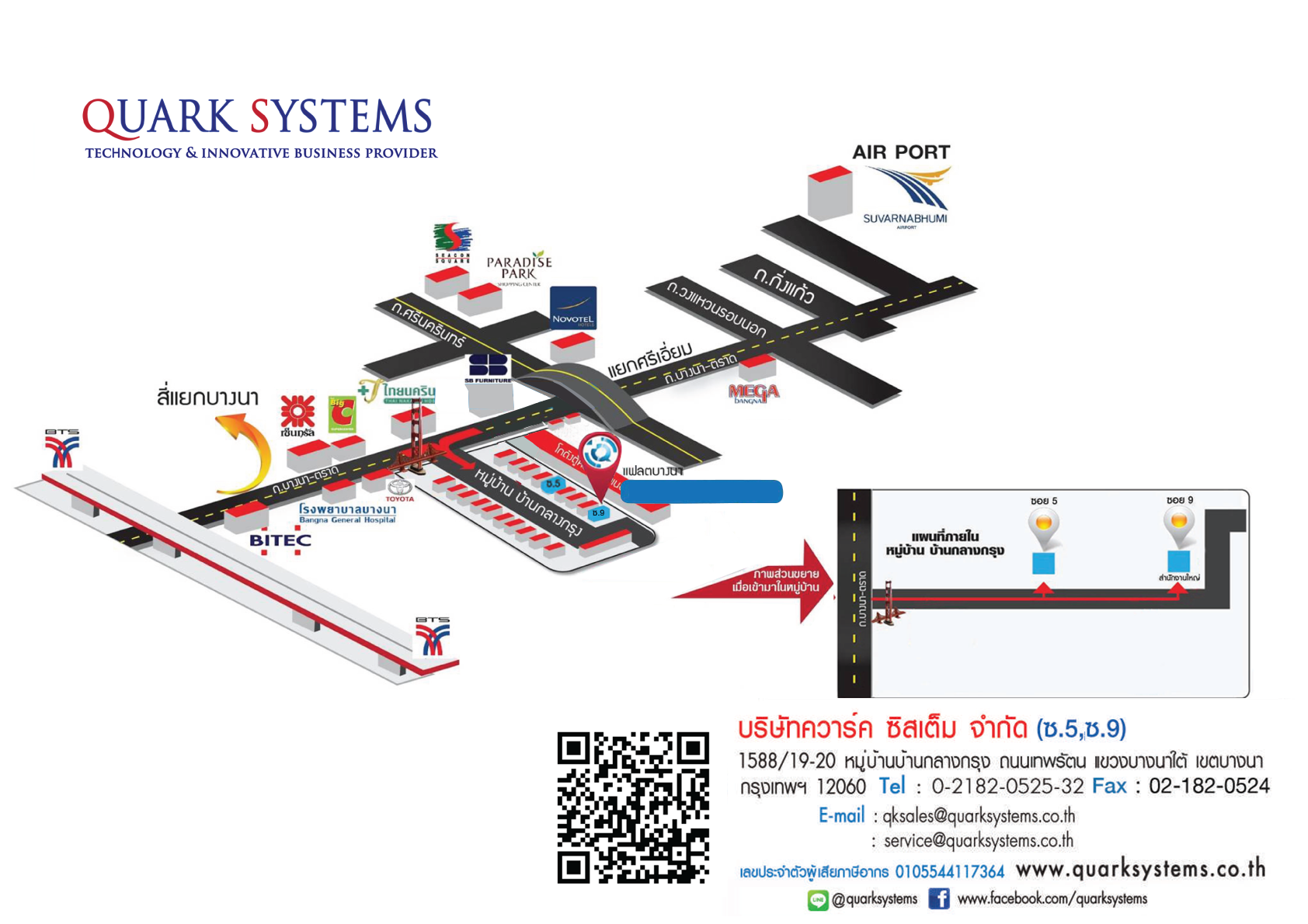 Quarksystems Co.,Ltd. 1588 /19-20 Moobaan Baanklangkrung Debaratna bangna Tai, Bangna Bangkok Thailand 10260 บางนาใต้ เขตบางนา จังหวัดกรุงเทพมหานคร 10260 ประเทศไทย