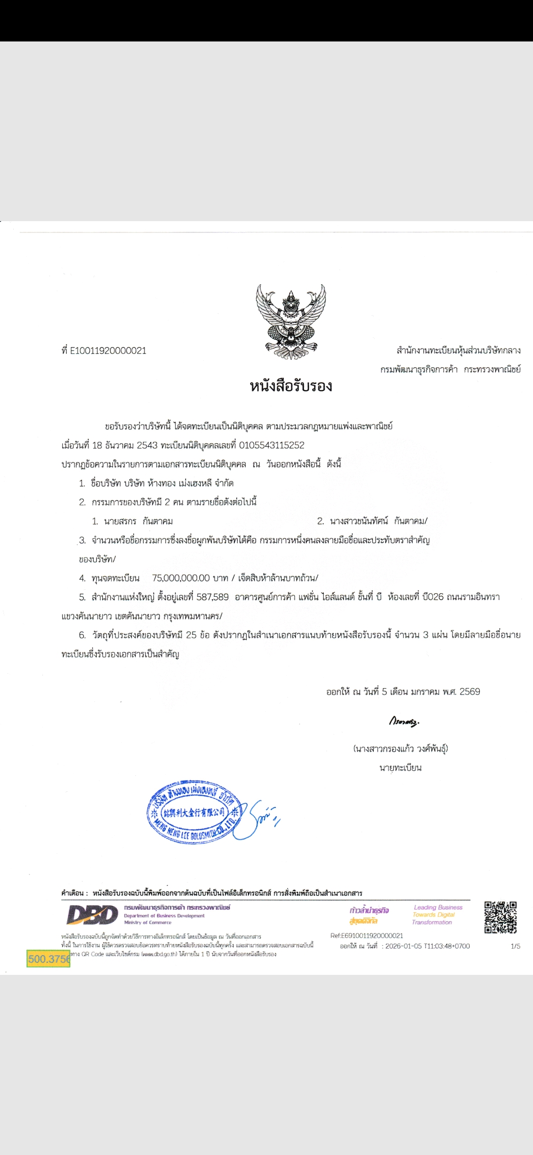 เบอร์ผู้ติดต่อ : 0920412222