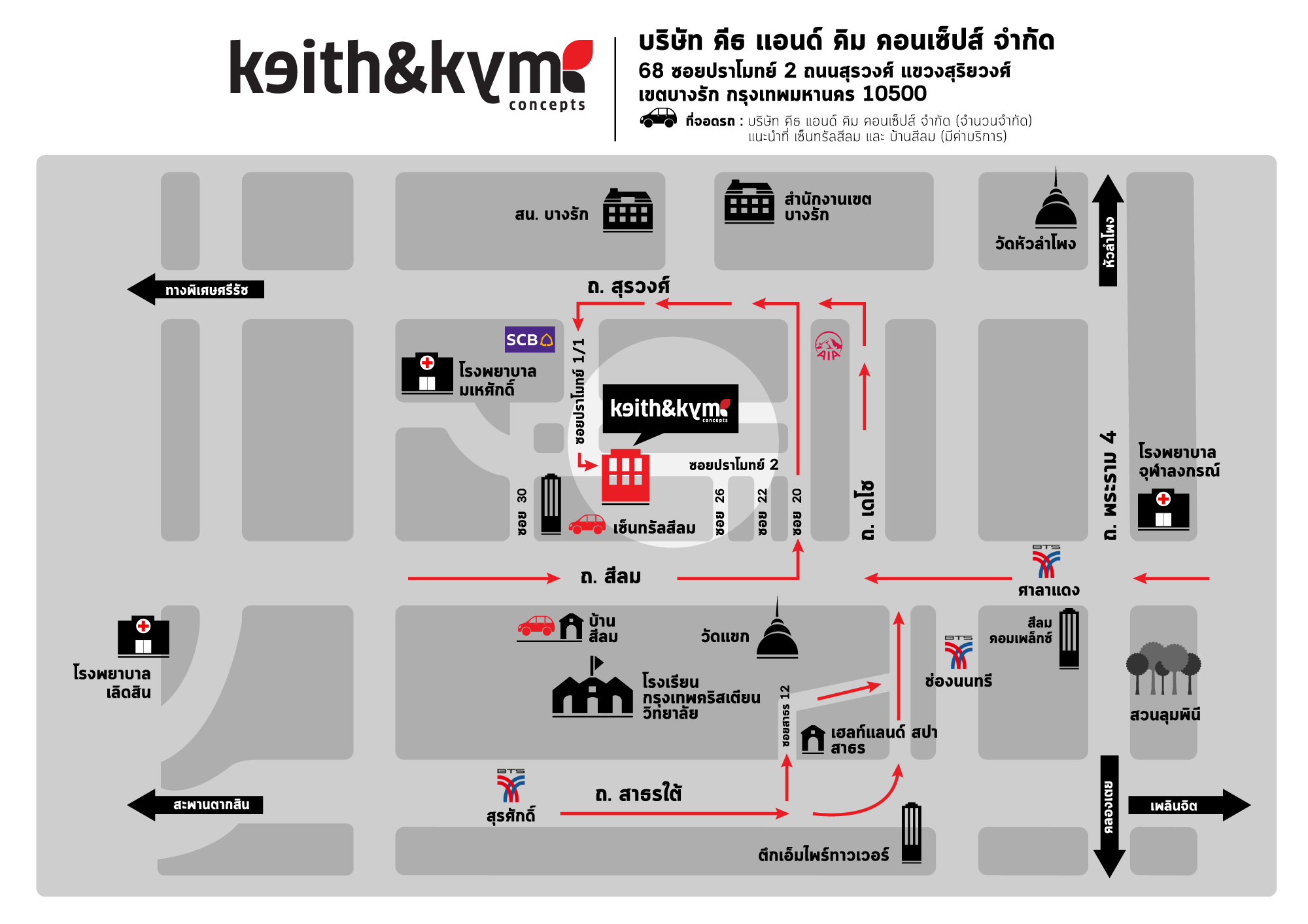 บริษัท คีธ แอนด์ คิม คอนเซ็ปส์ จำกัด 68 ซอยปราโมทย์2 ถนนสีลม แขวงสุริยวงศ์ เขตบางรัก จังหวัดกรุงเทพมหานคร 10500 ประเทศไทย