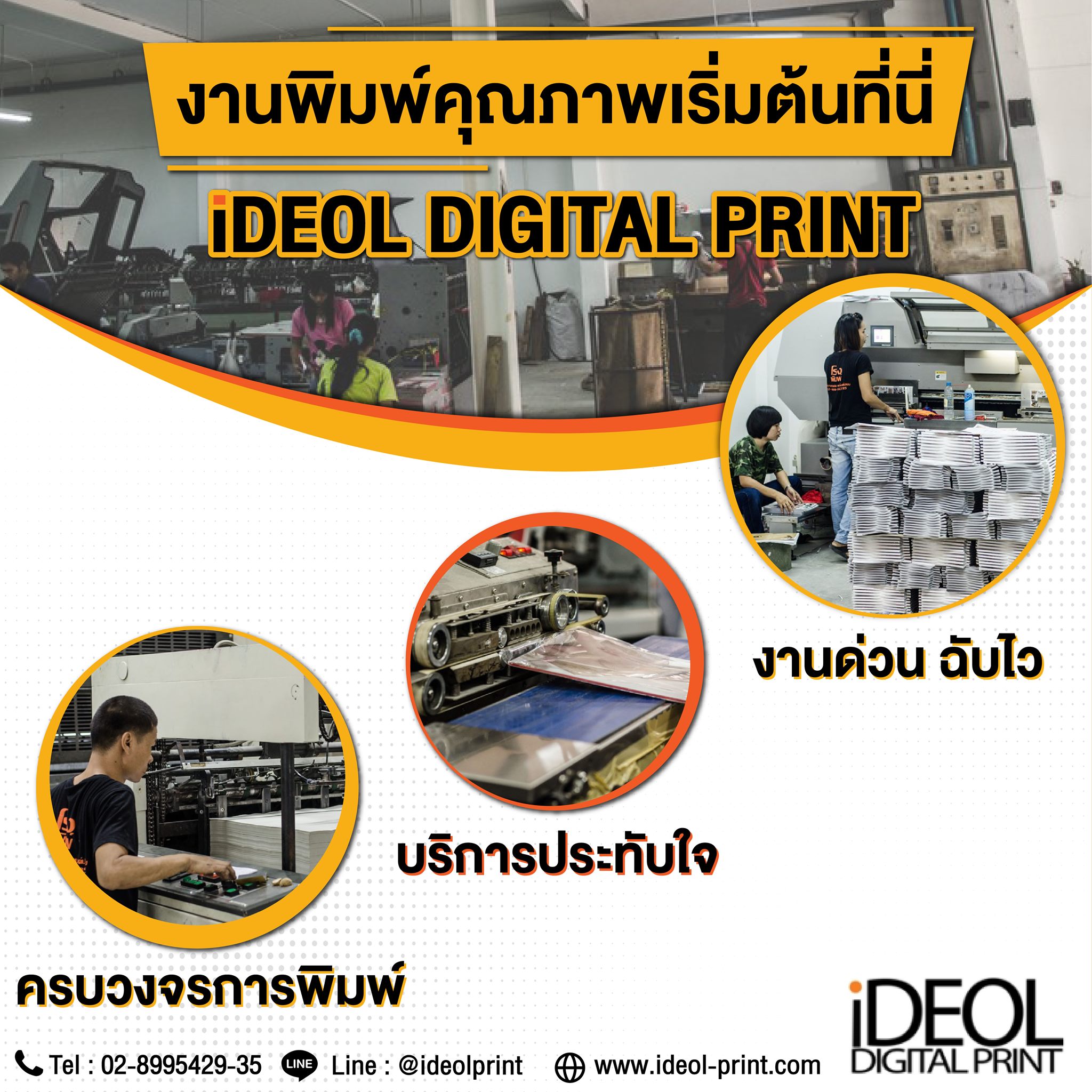 บริษัท ไอดี ออล ดิจิตอลพริ้นท์ จำกัด ก่อตั้งเมื่อวันที่ 12 มีนาคม พ.ศ. 2553 โดยกลุ่มบุคคลผู้ซึ่งมีความเชี่ยวชาญและสนใจทางด้านการพิมพ์ บริษัทของเราเป็นธุรกิจโรงพิมพ์แบบขนาดกลาง สามารถรองรับการผลิตสิ่งพิมพ์ ทั้งงานพิมพ์ระบบดิจิตอลที่ต้องการความรวมเร็วและจำนวนน้อย รวมถึงระบบพิมพ์ออฟเซตที่คุณภาพสูงและปริมาณพิมพ์เยอะ บริษัทของเรายังดูแลเรื่องไฟล์ตั้งแต่กระบวนการ prepress ตรวจสอบไฟล์ ออกเพลท ก่อนพิมพ์ รวมถึงยังมีอุปกรณ์และเครื่องจักรสำหรับการรองรับกระบวนการหลังพิมพ์ (Finishing) ที่หลากหลาย ทำให้เราสามารถควบคุมคุณภาพของสิ่งพิมพ์และเวลาในการผลิตได้เป็นอย่างดี จึงทำให้เรากล้าให้คำมั่นสัญญากับลูกค้าทุกท่านเลยว่า เราจะบริการส่งสิ่งพิมพ์ที่มีคุณภาพดี ได้ตรงต่อเวลากับที่เราได้สัญญากับลูกค้าทุกๆท่านไว้ แม้ว่าทางบริษัทของเราเป็นธุรกิจโรงพิมพ์ขนาดกลาง แต่สิ่งที่ทำให้เราแตกต่างนั้นคือ เราให้บริการแบบเป็นกันเอง สามารถให้คำแนะนำและตอบปัญหาทางการพิมพ์ได้อย่างมืออาชีพ เนื่องจากบุคลากรของเราเป็นผู้มีความรู้ความเชี่ยวชาญและมีประสบการณ์ทางด้านงานพิมพ์โดยเฉพาะ โดยลูกค้าของเราประกอบไปด้วยหลายๆ องค์กร อาทิเช่น โรงแรม องค์กรของรัฐและเอกชน สถานบันการศึกษา เป็นต้น ซึ่งการบริการผลิตสิ่งพิมพ์ให้กับองค์กรเหล่านี้ เป็นสิ่งที่สะท้อนให้ลูกค้าทุกท่านได้มั่นใจในความเป็นมืออาชีพในด้านบริการไปพร้อมๆกับด้านคุณภาพของเรา