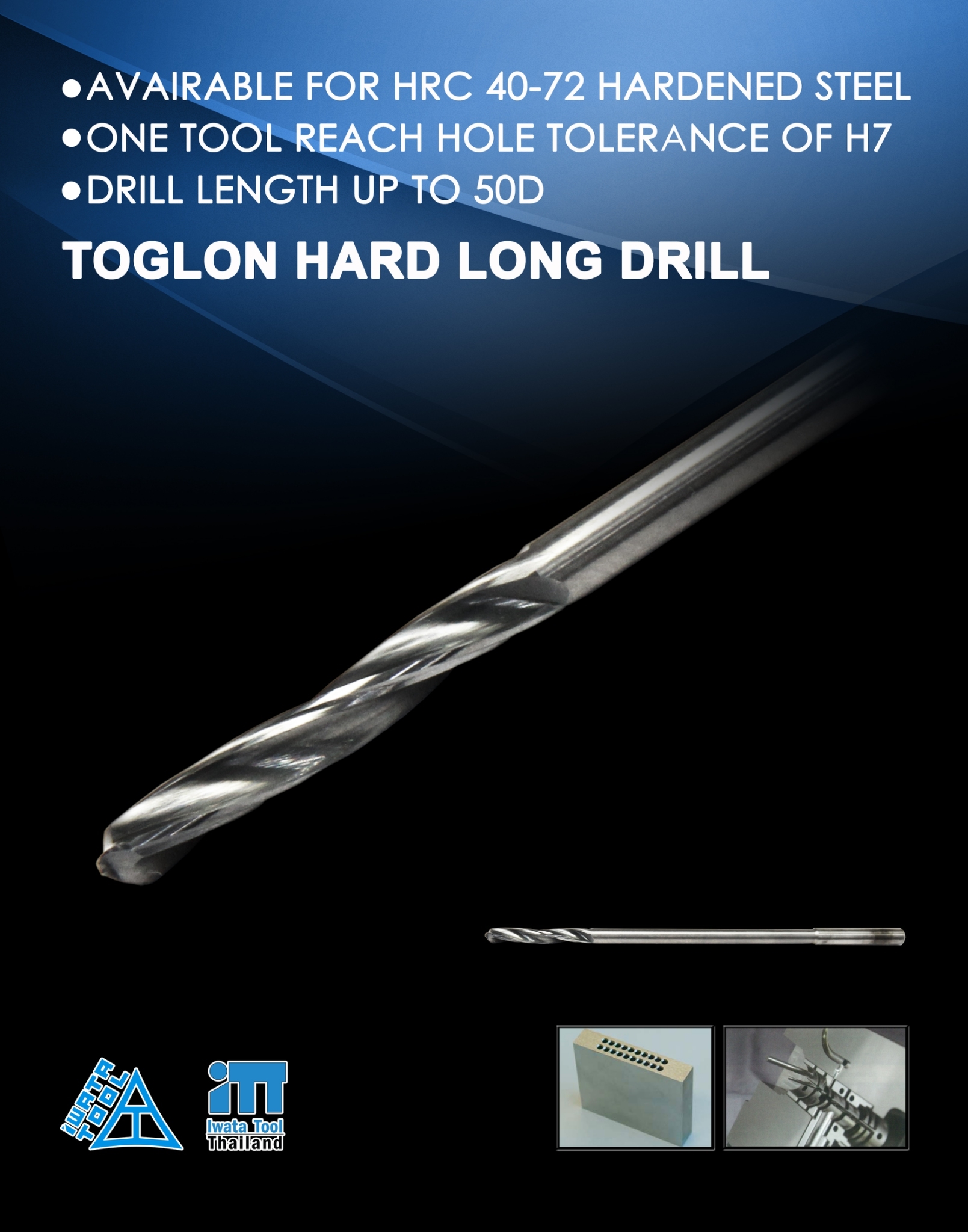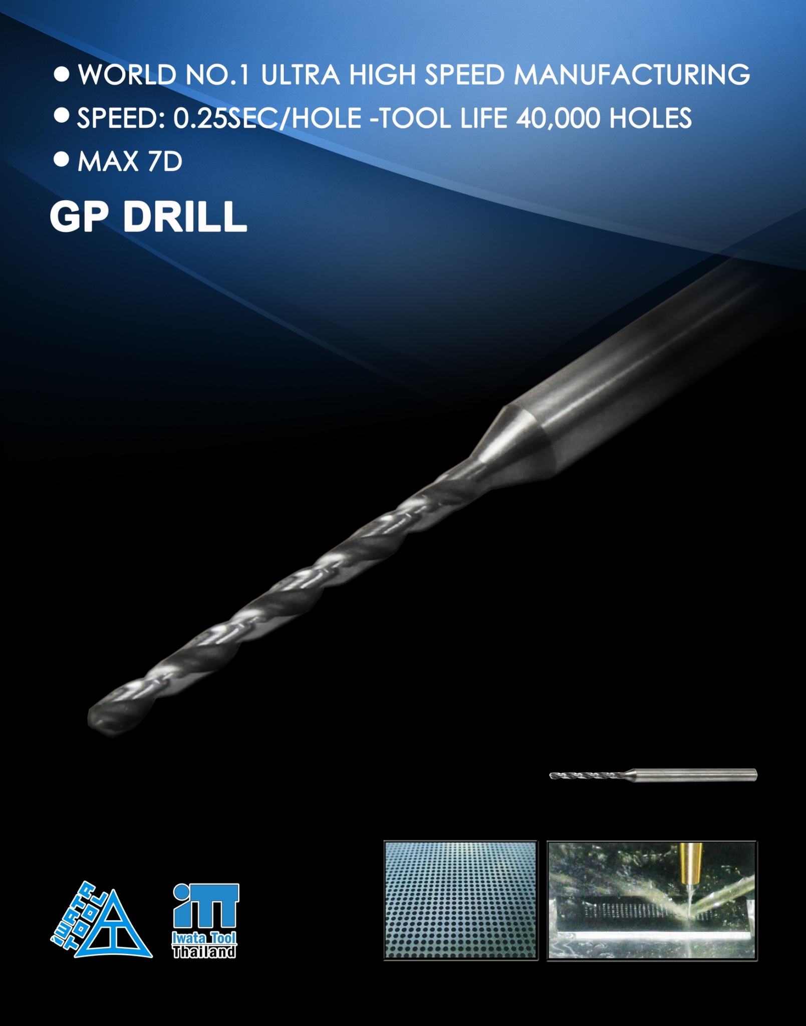IWATA TOOL focuses on the development of high performance cutting tools, especially in small diameters. Being the first to manufacture center drills in Japan in 1928 IWATA TOOL has developed a wide range of high precision and high performance cutting tools over the years thus acquiring the know how to develop outstanding solutions for the future.