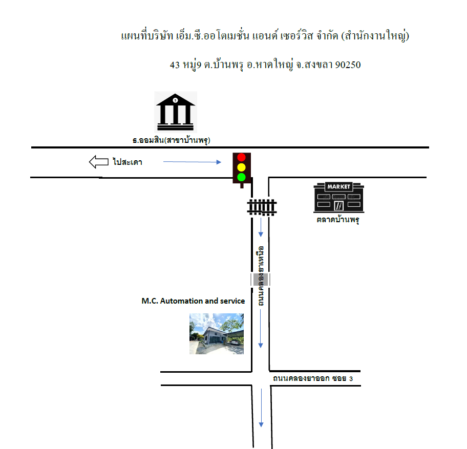 บริษัท เอ็ม.ซี.ออโตเมชั่น แอนด์ เซอร์วิส จำกัด 43 หมู่ 9 ตำบลบ้านพรุ อำเภอหาดใหญ่ จังหวัดสงขลา 90250 ประเทศไทย