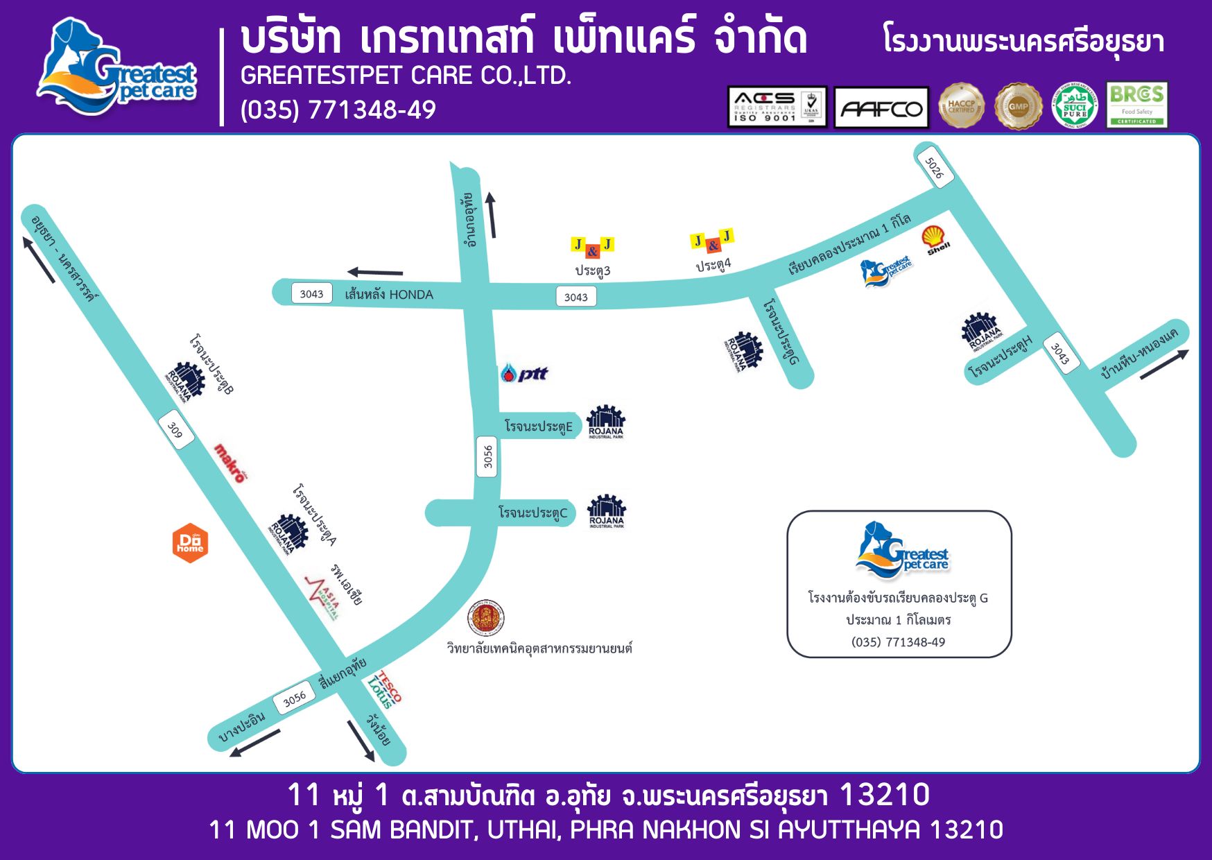 บริษัท เกรทเทสท์ เพ็ทแคร์ จำกัด 11 ม.1 ตำบลสามบัณฑิต อำเภออุทัย จังหวัดพระนครศรีอยุธยา 13210 ประเทศไทย