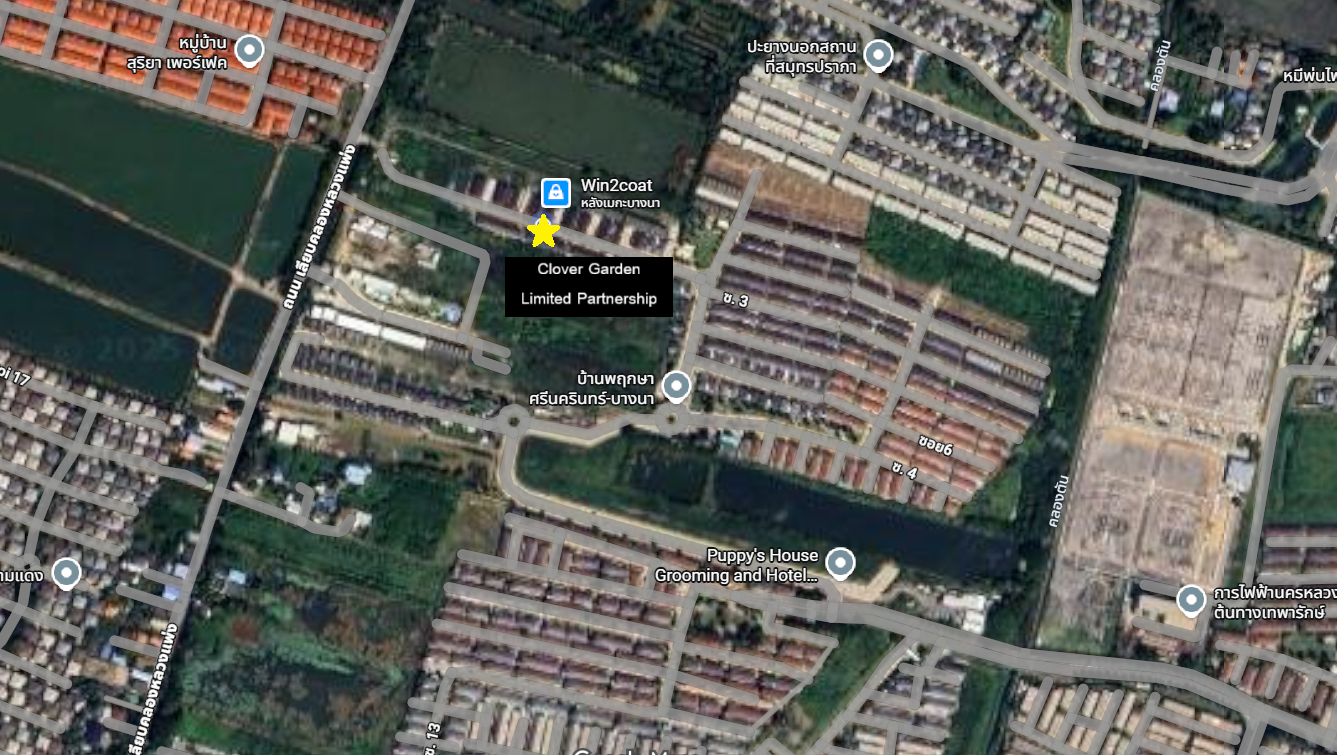Clover Garden Limited Partnership 222/21 หมู่บ่าน บ้านพฤกษาศรีนครินทร์-บางนา หมู่ 9 ตำบลบางแก้ว อำเภอบางพลี จังหวัดสมุทรปราการ 10540 ประเทศไทย