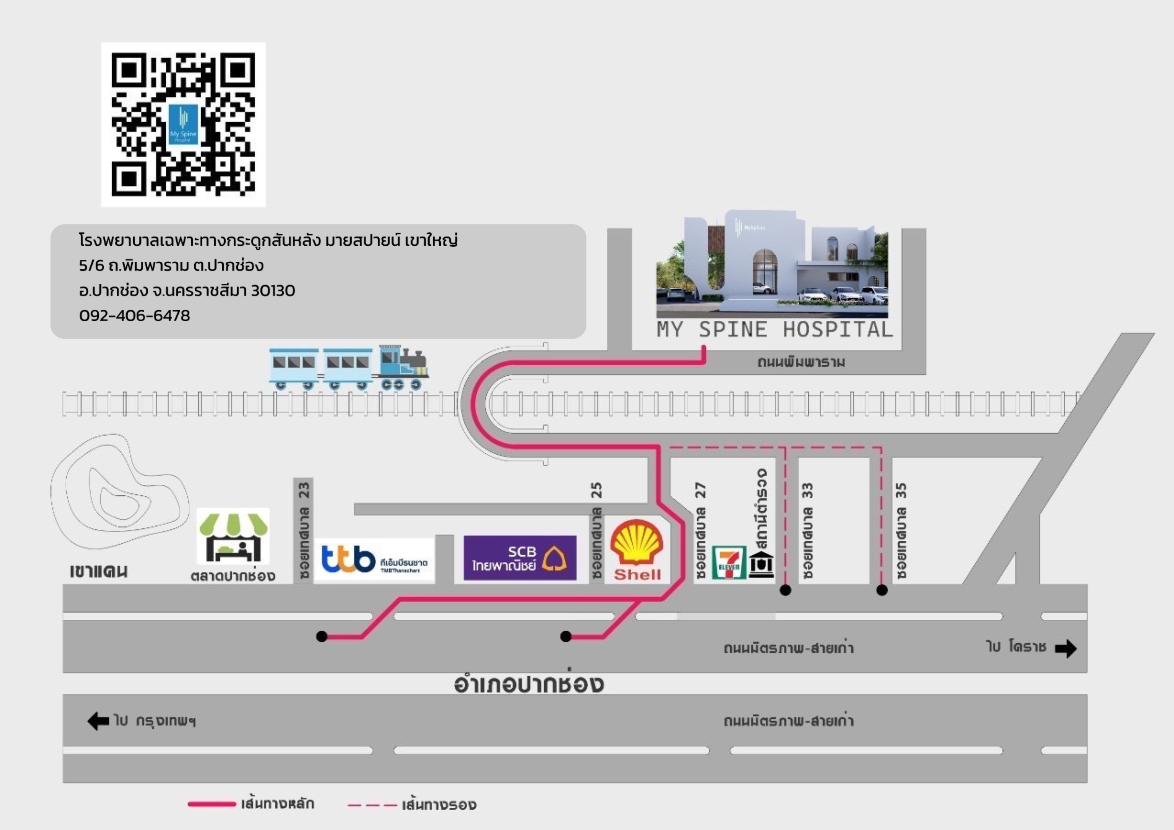 มายน์ สไปน์ ฮอสปิตอล จำกัด 5/6 ถ.พิมพาราม ตำบลปากช่อง อำเภอปากช่อง จังหวัดนครราชสีมา 30130 ประเทศไทย