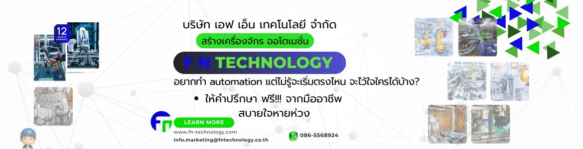 บริษัท เอฟ เอ็น เทคโนโลยี จำกัด (F N TECHNOLOGY CO., LTD.) คือผู้นำด้านการวางแผนและสร้างโซลูชันระบบอัตโนมัติแบบครบวงจร (Integrated Automation Solutions) ด้วยประสบการณ์ยาวนานกว่า 10 ปี ในอุตสาหกรรมการผลิต เรามุ่งมั่นที่จะเป็นพันธมิตรที่เชื่อถือได้ของลูกค้า ในการยกระดับประสิทธิภาพและขีดความสามารถของสายการผลิตให้ก้าวทันเทคโนโลยี Industry 4.0, IIoT และ AI ที่ขับเคลื่อนโลกอุตสาหกรรมในปัจจุบัน เราให้บริการตั้งแต่การให้คำปรึกษาการออกแบบ และการผลิตเครื่องจักรตามความต้องการเฉพาะ (Custom-Built Automation Machines) ไปจนถึงการสนับสนุนหลังการขาย เพื่อให้มั่นใจ ว่าทุกโซลูชันที่เรานำเสนอจะตอบโจทย์ธุรกิจของคุณได้อย่างสมบูรณ์แบบ