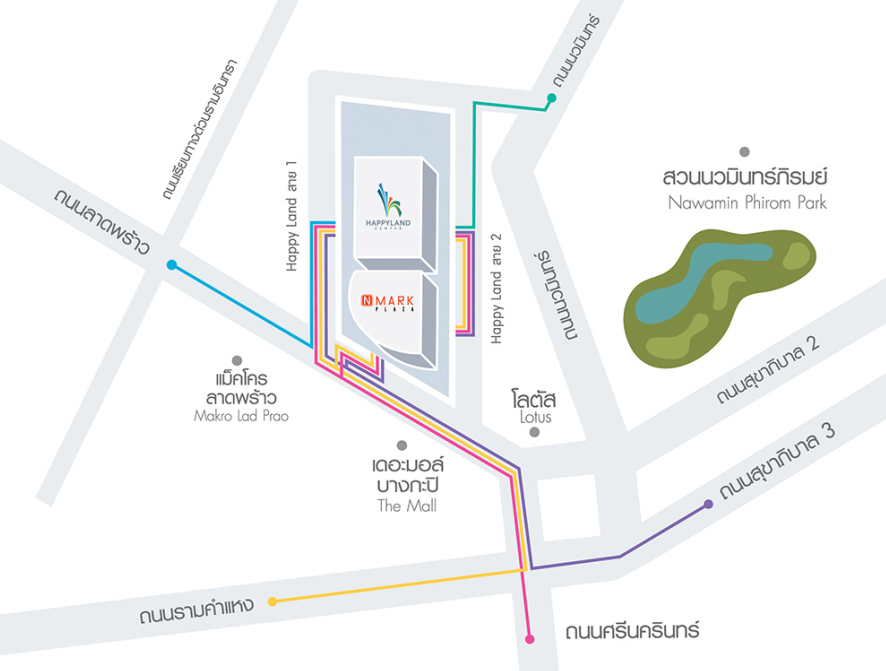 การเดินทางเพิ่มเติม : BTS สายสีเหลือง สถานีบางกะปิ รถเมล์สาย 8, 27, 44, 92, 96, 122, 126, 137, 145, 151, 156, 172, 178, 182, 502, 514, 545, 73ก, 514