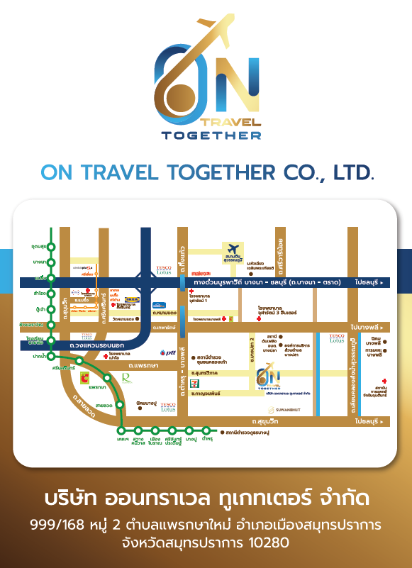 บริษัท ออนทราเวล ทูเกทเตอร์ จำกัด 99/168 ตำบลแพรกษา อำเภอเมืองสมุทรปราการ จังหวัดสมุทรปราการ 10280 ประเทศไทย