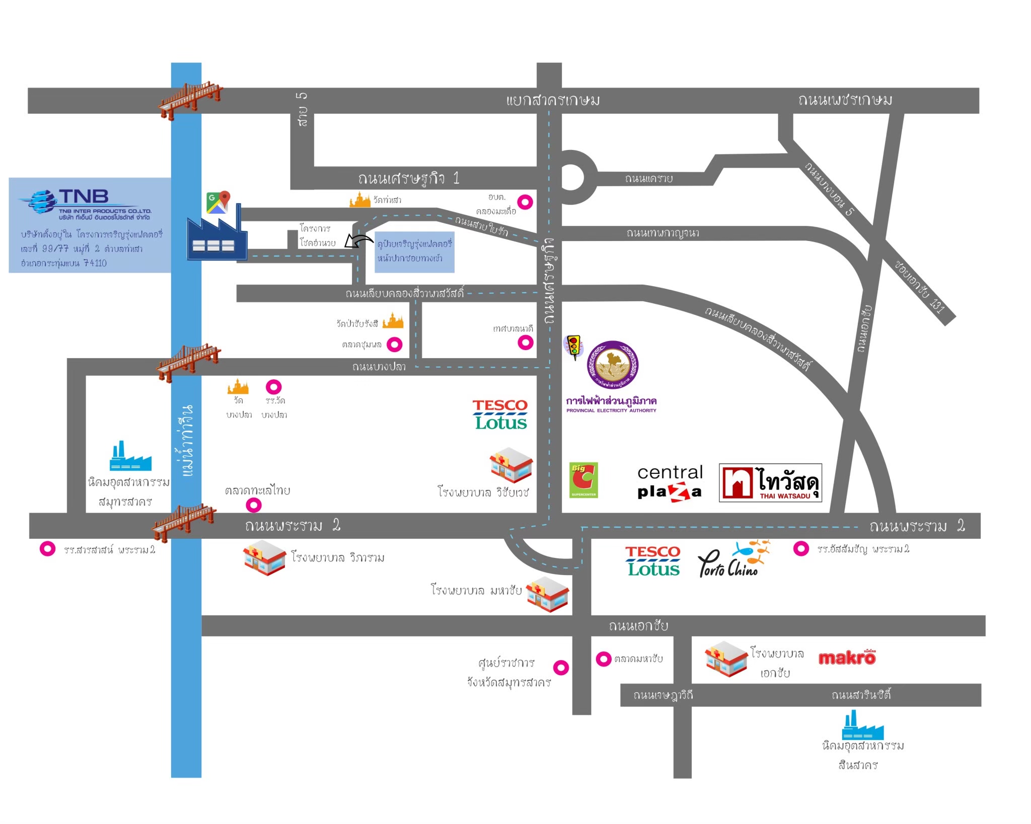 99/77 หมู่ที่ 2 ตำบลท่าเสา อำเภอกระทุ่มแบน จังหวัดสมุทรสาคร 74110 ประเทศไทย
