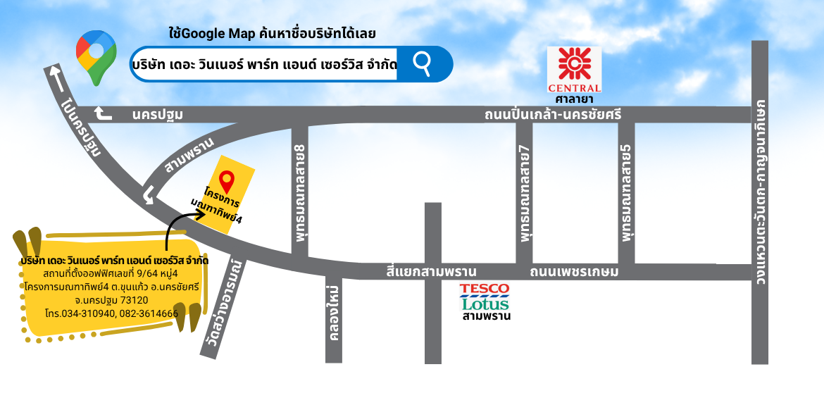 การเดินทางเพิ่มเติม : ตั้งอยู่ถนนเพชรเกษม ฝั่งขาเข้ากรุงเทพฯ ก่อนถึงพุทธมณฑลสาย8 อยู่ฝั่งตรงข้ามบริษัท อินโดรามา โพลีเอสเตอร์ อินดัสตรี้ส์ จำกัด(มหาชน)