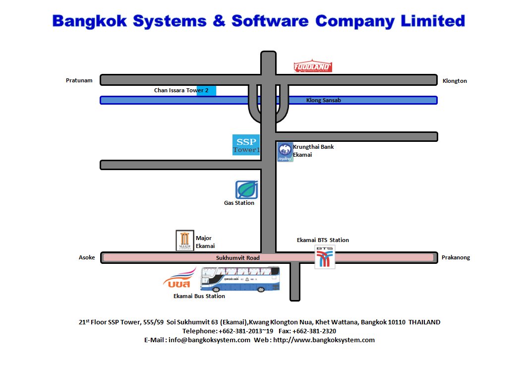 Bangkok Systems & Software Co.,Ltd. 555/59 ซอยสุขุมวิท 63 (เอกมัย) แขวงคลองตันเหนือ เขตวัฒนา จังหวัดกรุงเทพมหานคร 10110 ประเทศไทย