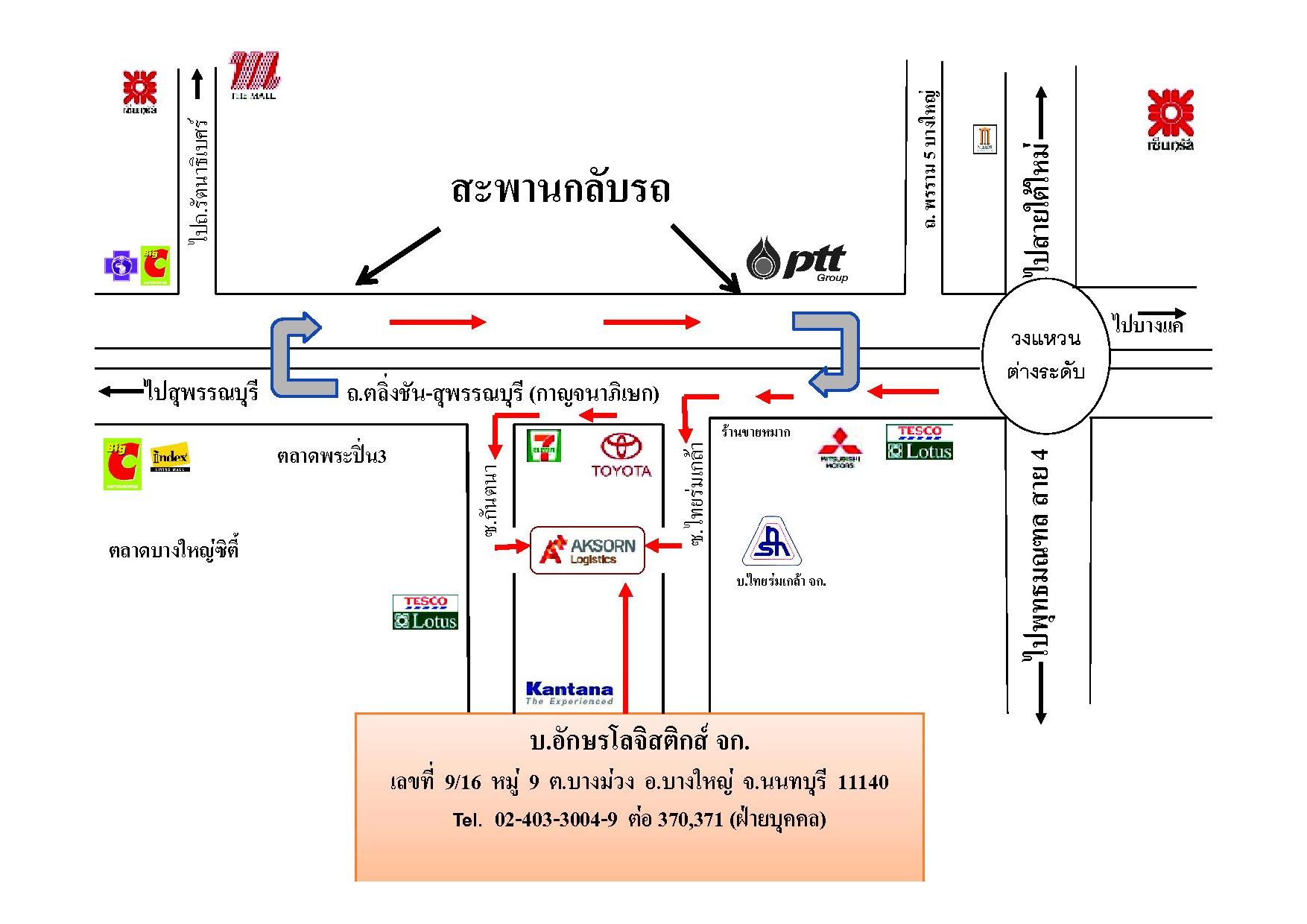 บริษัท อักษรโลจิสติกส์ จำกัด 9/16 หมู่ที่ 9 ตำบลบางม่วง อำเภอบางใหญ่ จังหวัดนนทบุรี 11140 ประเทศไทย