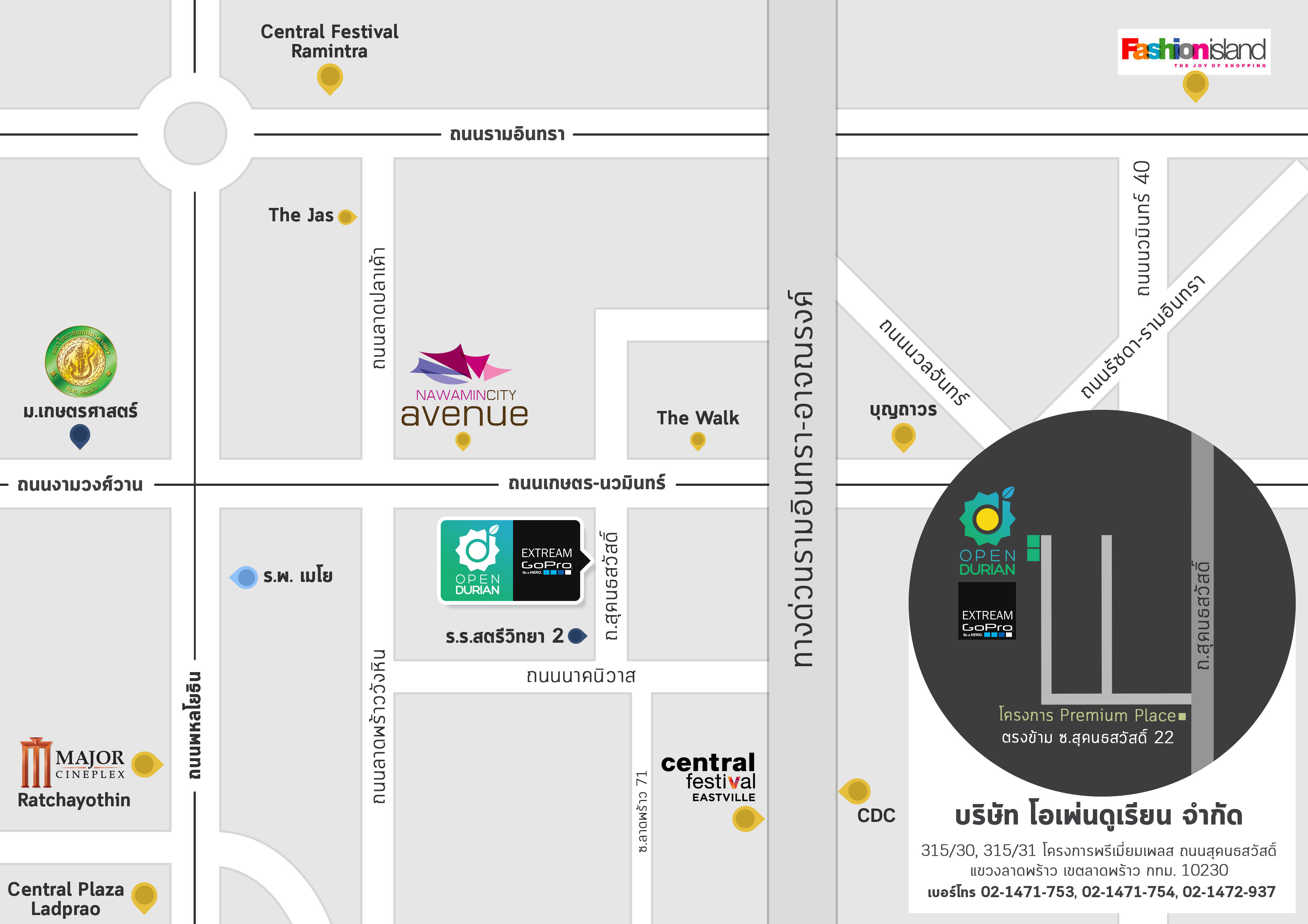 บริษัท โอเพ่นดูเรียน จำกัด 3300/85-88 ชั้น 15 อาคารบี โครงการตึกช้าง ถนนพหลโยธิน แขวงจอมพล เขตจตุจักร กรุงเทพมหานคร 10900 แขวงจอมพล เขตจตุจักร จังหวัดกรุงเทพมหานคร 10900 ประเทศไทย