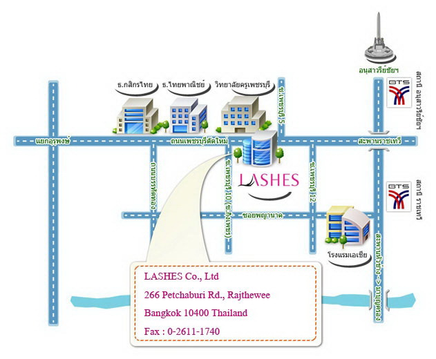 บริษัท แลชเชส จำกัด 266 อาคาร GCAP ถ.เพชรบุรี แขวงถนนเพชรบุรี เขตราชเทวี จังหวัดกรุงเทพมหานคร 10400 ประเทศไทย