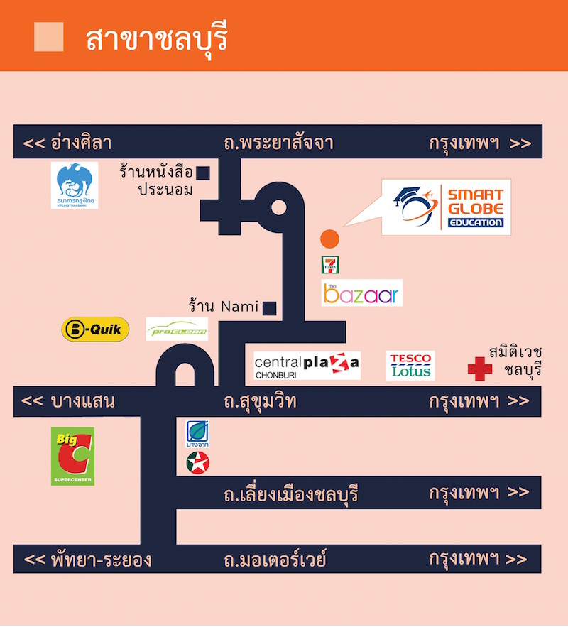 Smart Globe Education was established in February 2012 in Chon Buri province, one of the most urbanized areas in Thailand aside from Bangkok. It is located in the heart of Chon Buri, nearby the Central Plaza Chon Buri, the famous and one of the biggest shopping centres in this area. In June 2016, we opened the service office in Bangkok to support clients in our capital city.