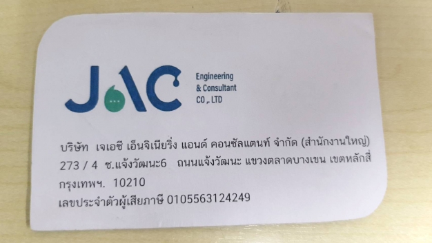 JAC Engineering and Consultant .co.,ltd 273/4 ซ.แจ้งวัฒนะ6 ถ.แจ้งวัฒนะ6 แขวงตลาดบางเขน เขตหลักสี่ จังหวัดกรุงเทพมหานคร 10210 ประเทศไทย