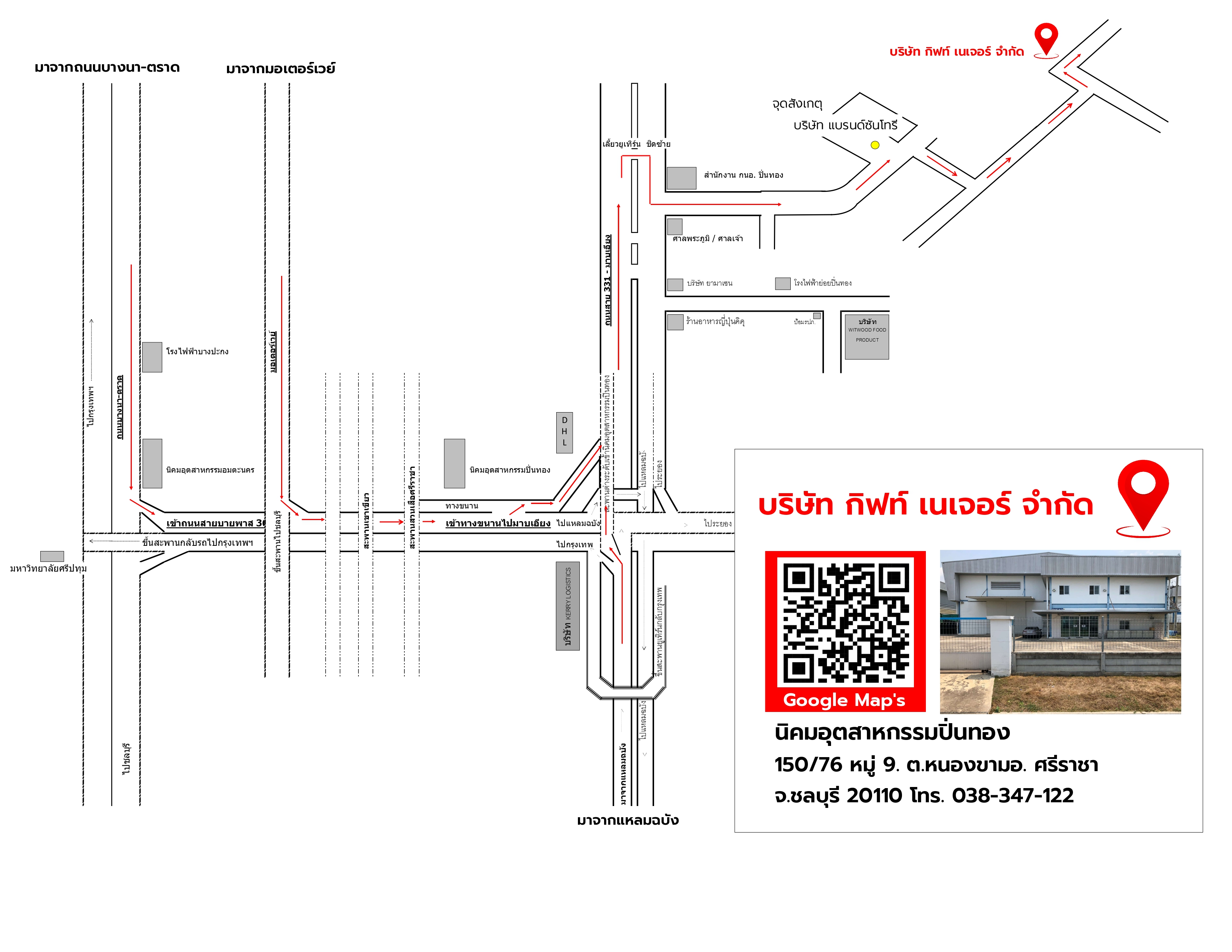 บริษัท กิฟท์ เนเจอร์ จำกัด 150/76 หมู่ 1 ตำบลหนองขาม อำเภอศรีราชา จังหวัดชลบุรี 20110 ประเทศไทย