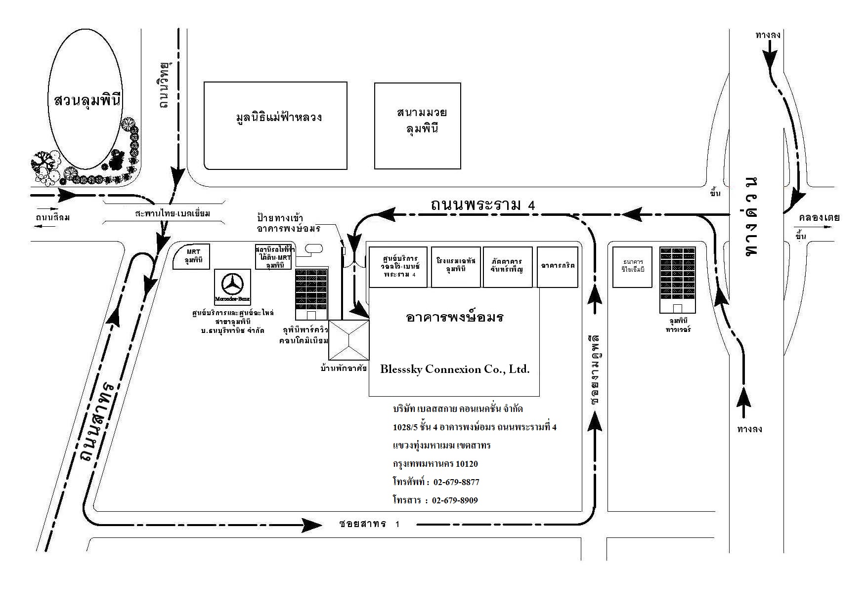 บริษัท เบลสสกาย คอนเนคชั่น จำกัด 1028/5 อาคารพงษ์อมร ชั้น 4 ถ.พระรามที่ 4 แขวงทุ่งมหาเมฆ เขตสาทร จังหวัดกรุงเทพมหานคร 10120 ประเทศไทย