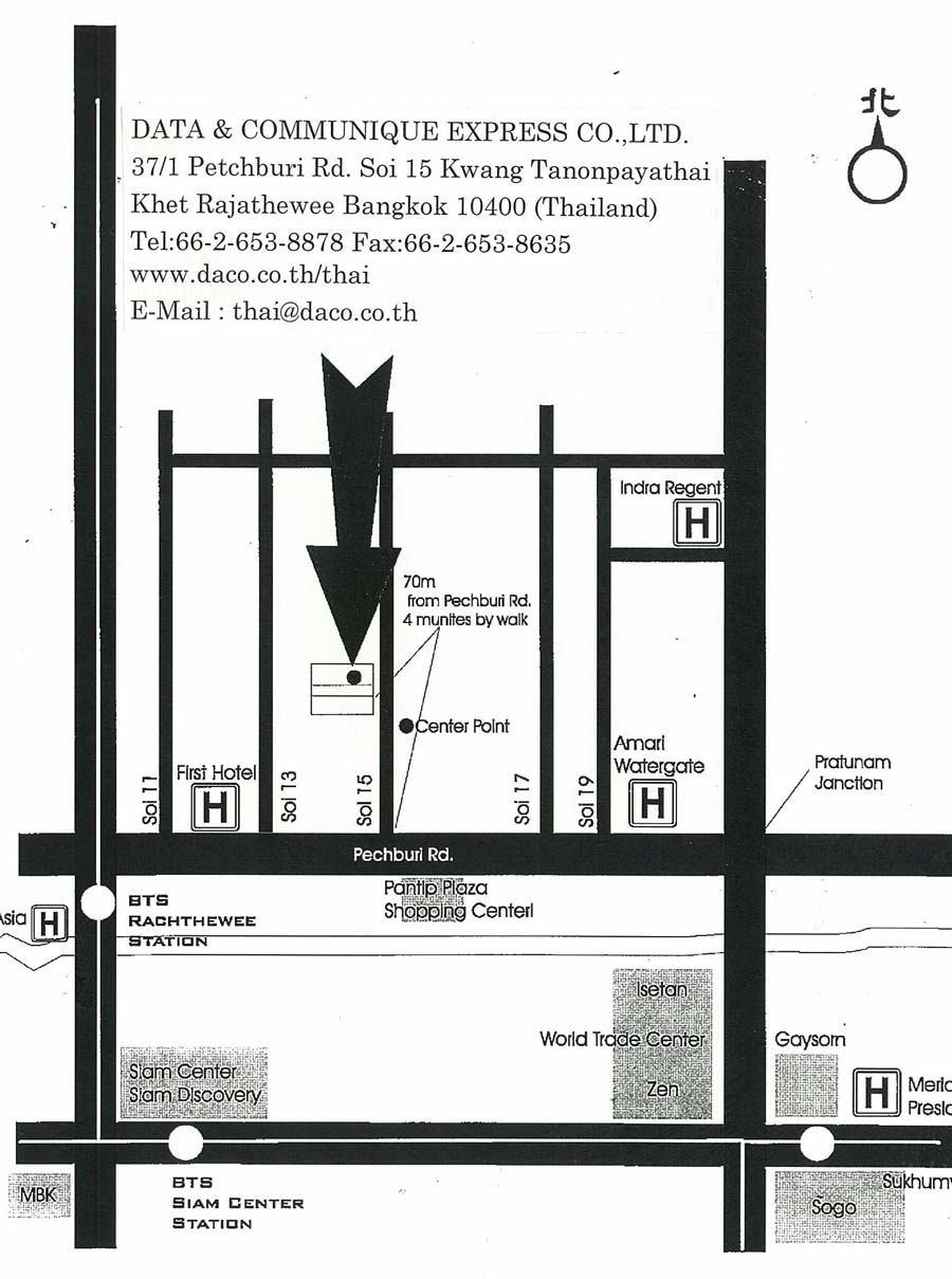 DATA & COMMUNIQUE EXPRESS CO.,LTD. 37/1 Petchburi Rd. Soi 15 Kwang Tanonpayathai Khet Rajathewee จังหวัดกรุงเทพมหานคร 10400 ประเทศไทย