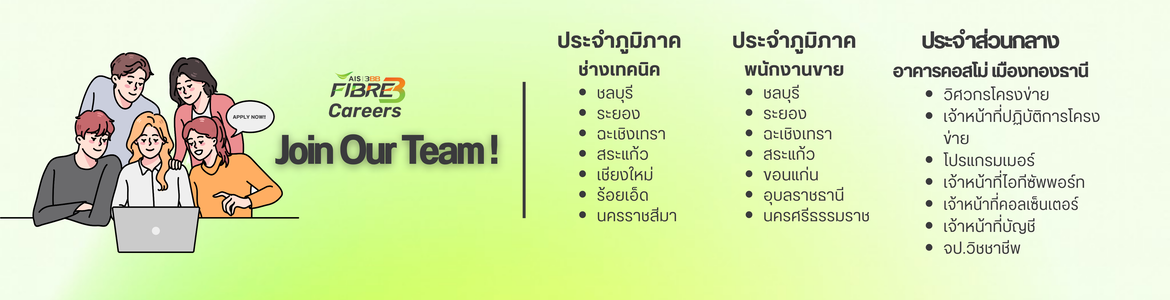 ชื่อตำเเหน่งงาน : FBB Direct Sales (พนักงานขายอินเทอร์เน็ตบ้าน AIS Fibre)