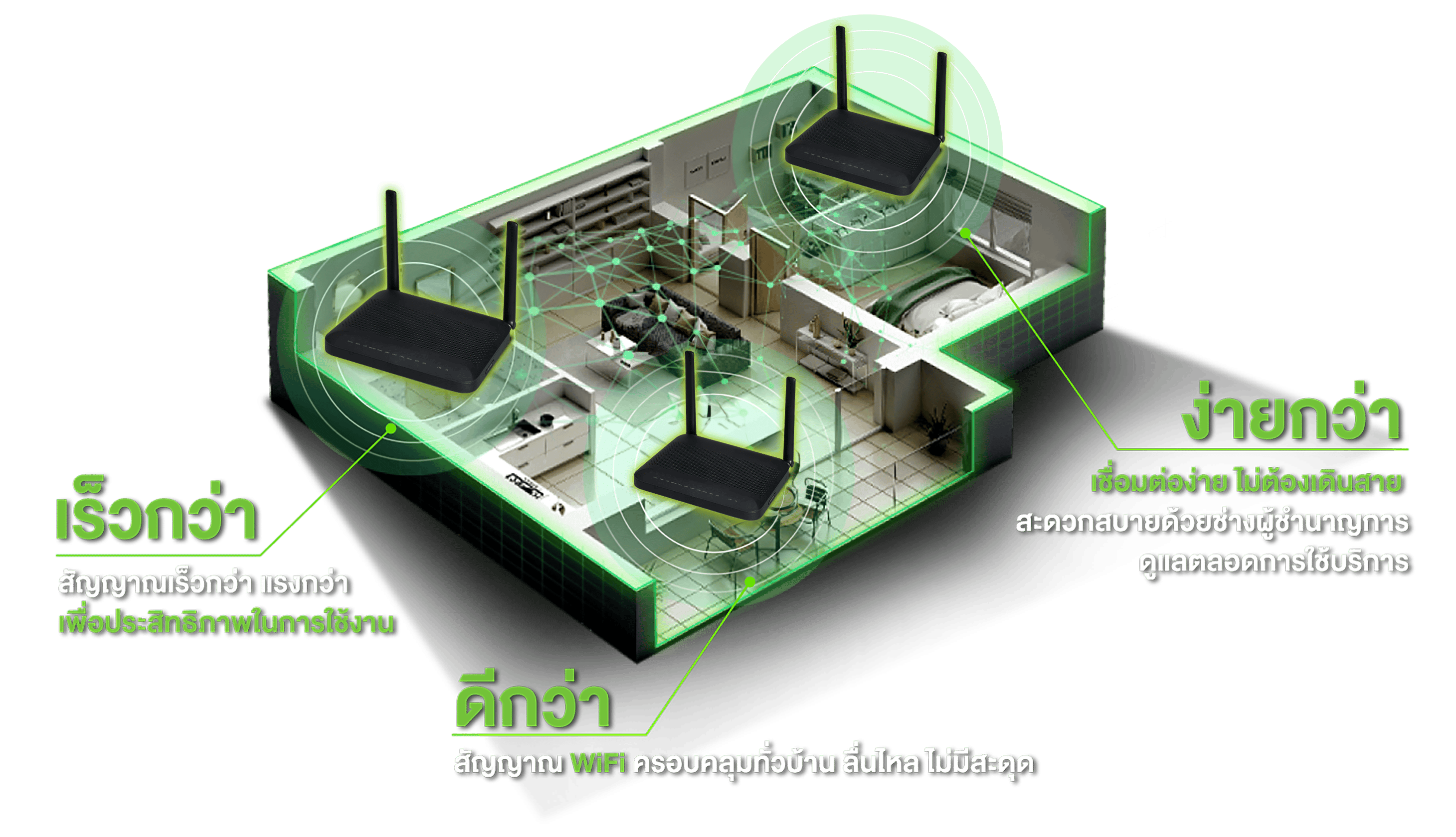 AIS 3BB FIBRE3 ให้บริการอินเทอร์เน็ตความเร็วสูง ภายใต้แบรนด์ 'AIS Fibre3' และ '3BB Fibre3' ให้บริการอินเทอร์เน็ตความเร็วสูงครอบคลุมทั้งภาคครัวเรือนและองค์กรธุรกิจ ด้วยมาตรฐานการให้บริการและนวัตกรรมเหนือระดับ ทำให้เอไอเอสสามารถสร้างการเติบโตในระดับสูงทั้งในเชิงผู้ใช้บริการ และรายได้เหนือกว่าผู้ให้บริการรายอื่น และ ยังคงเป็นโครงข่ายเน็ตบ้านอันดับ 1 ที่มีฐานผู้ใช้งานมากกว่า 5 ล้านราย ขณะเดียวกันอุตสาหกรรมเน็ตบ้านไทยในวันนี้ มีจำนวนเลขหมายผู้ใช้บริการเน็ตบ้าน และอัตราการเข้าถึงบริการเน็ตบ้านต่อประชากร (Penetration rate) อยู่ที่ 36.8% แสดงให้เห็นถึงโอกาสในการเติบโตอีกมากในอนาคต “ เราเชื่อว่าธุรกิจเน็ตบ้านในวันนี้ ไม่ได้วัดกันแค่ความเร็วหรือความแรง แต่ต้องเข้าถึงความต้องการของทุกบ้านอย่างแท้จริง ” เป็นหัวใจสำคัญที่ขับเคลื่อนให้ AIS 3BB FIBRE3 เดินหน้าพัฒนานวัตกรรมและโซลูชันที่ตอบโจทย์ทุกดิจิทัลไลฟ์สไตล์ ภายใต้แนวคิดหลัก “BOOSTING YOUR BRIGHTER FUTURE – อนาคตที่มากกว่าเพื่อคุณ” ซึ่งแตกออกเป็น 3 แกนกลยุทธ์หลัก ได้แก่ “เชื่อมต่อ-สร้างโอกาส-มอบความสุข”