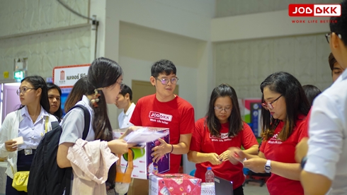 ในช่วงบ่ายมีการเปิดบูธรับสมัครงาน มีสถานประกอบการเข้าร่วมรับสมัครงานกว่า 36 บริษัท น้องๆนักศึกษาให้ความสนใจกันเป็นอย่างมาก และเข้ามาพูดคุยสอบถามเกี่ยวกับการสมัครงาน โดยมีการลงทะเบียนที่จุดลงทะเบียนของทางบูธ JOBBKK และรับของที่ระลึกน่ารักๆกันอย่างครึกครื้น และในช่วงท้ายของกิจกรรม นักศึกษาที่เข้าร่วมกิจกรรมยังได้ลุ้นของรางวัลใหญ่เป็นเครื่องใช้ไฟฟ้าที่ทางมหาวิทยาลัยฯ และ JOBBKK จัดเตรียมไว้ให้น้องๆ โดยได้รับเกียรติจาก อาจารย์เด็ดเดี่ยว บุญมา เป็นผู้มอบของรางวัลให้กับผู้โชคดี และทางมหาวิทยาลัยได้มอบของที่ระลึกให้กับท่านวิทยากร และทีมงานที่ให้เกียรติมาในวันนี้ด้วยเช่นกัน