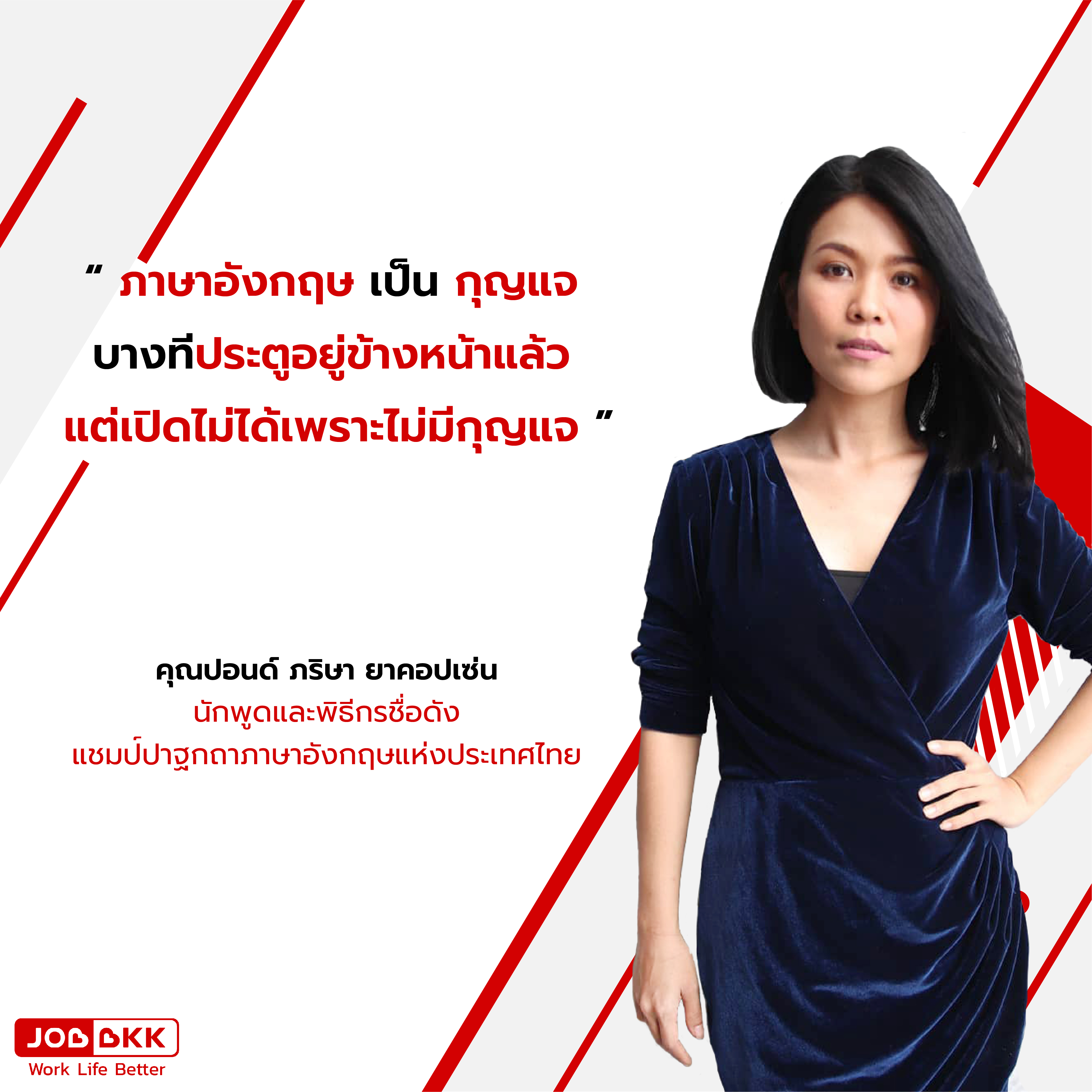 และโอกาสพิเศษจากงาน SWU Job Fair 2019 ที่จัดขึ้น ณ มหาวิทยาลัยศรีนครินทรวิโรฒ ประสานมิตร คุณปอนด์ก็ได้มาถ่ายทอดข้อคิดดีๆ ในการเตรียมตัวเข้าสู่วัยทำงานและแชร์เทคนิคในการฝึกภาษาอังกฤษจากประสบการณ์ของตัวเองโดยตรง พร้อมทั้งเผยความลับที่ทำให้เธอประสบความสำเร็จและมาถึงจุดนี้ได้ เพื่อเป็นความรู้และส่งมอบกำลังใจให้กับน้องๆ ก่อนเรียนจบและเข้าสู่โลกแห่งความเป็นจริง