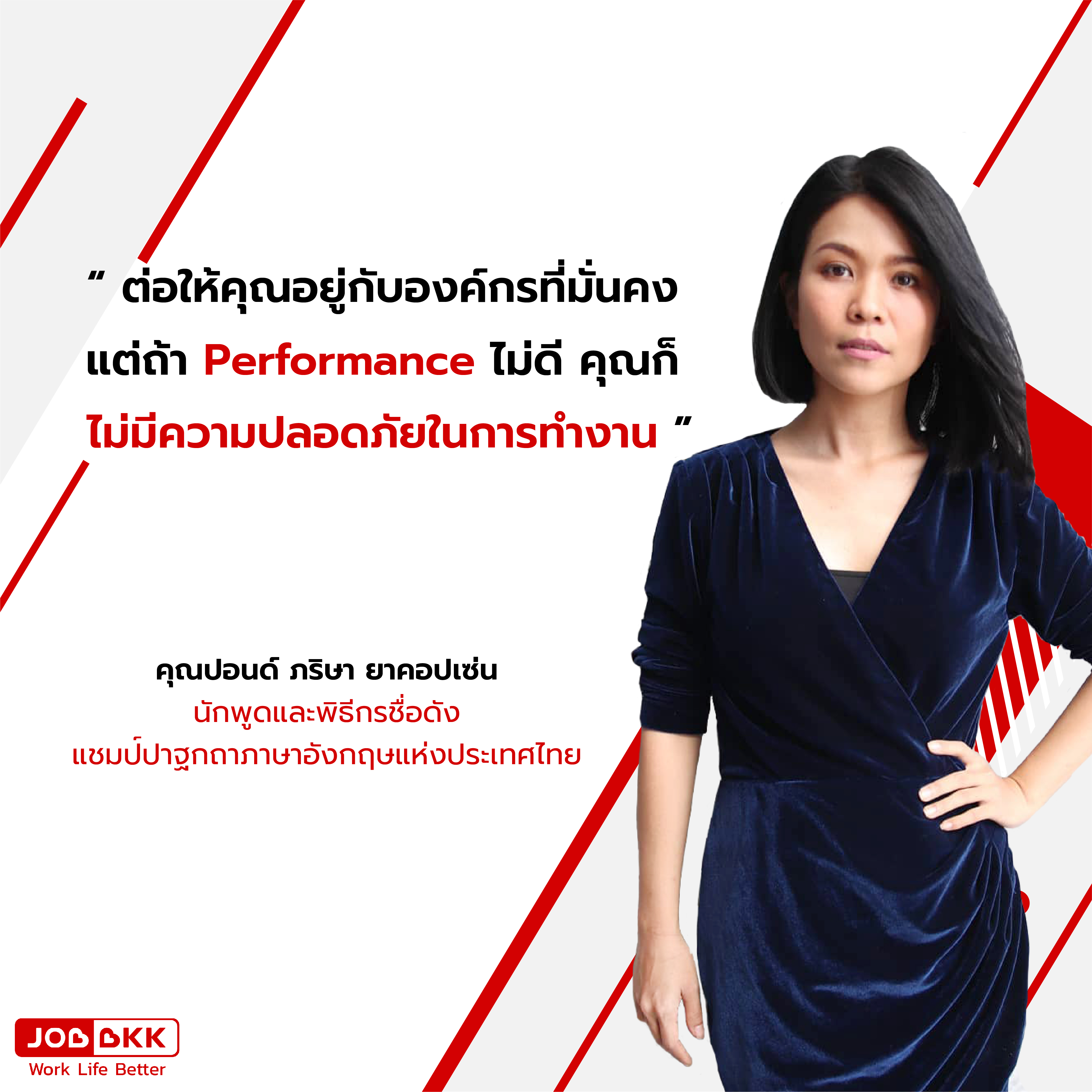 คนจะรู้สึกว่า ชีวิตการทำงานของเราจะ Secure ได้ คือเราต้องไปร่วมกับองค์กรที่มั่นคง แต่สำหรับปอนด์ คำว่า Job Security ในการทำงาน มันอยู่ที่ Performance ของเรา