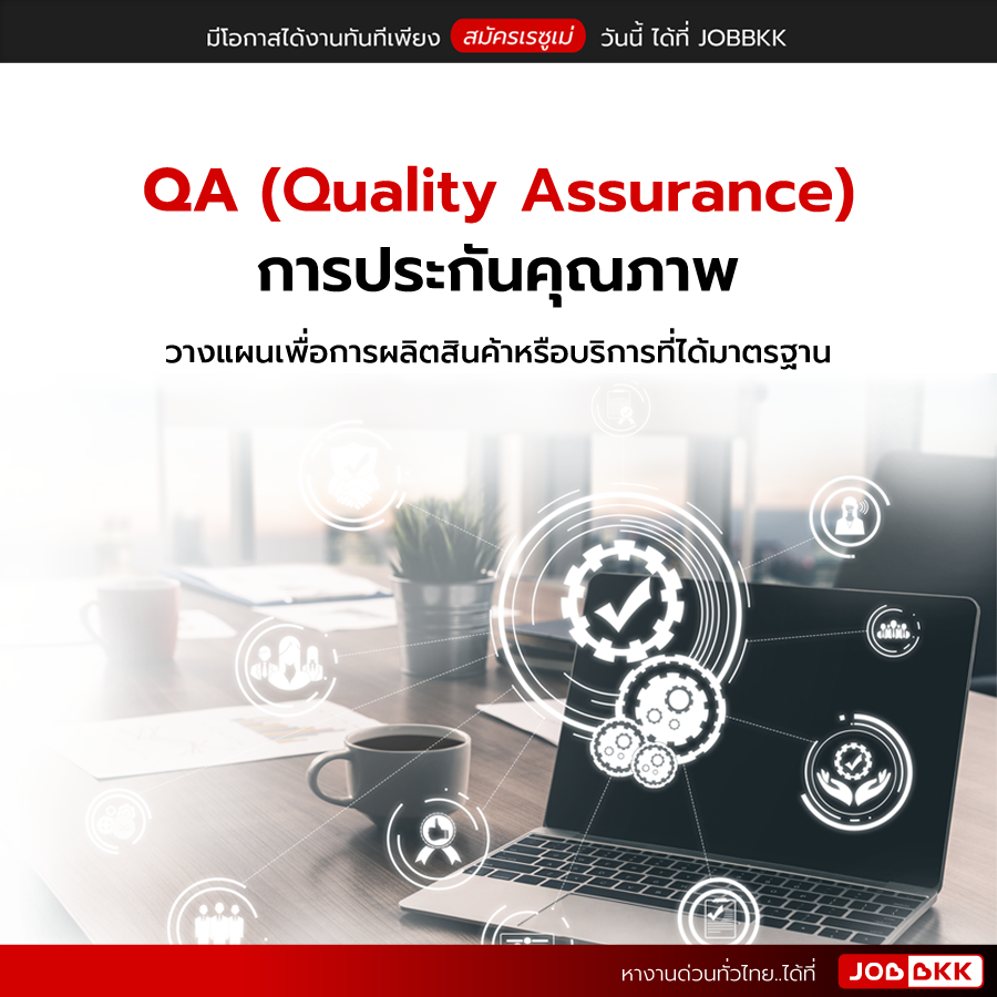 QA (Quality Assurance) หรือการประกันคุณภาพ ให้เข้าใจง่ายๆ ก็คือ นักวางแผนเพื่อการผลิตสินค้าหรือบริการที่ได้มาตรฐาน มีหน้าที่ในการวางแผนล่วงหน้าให้ขั้นตอนการผลิตสินค้าหรือบริการเป็นไปตามมาตรฐานที่กำหนด เพื่อป้องกันการเกิดปัญหาต่างๆ และนำไปสู่สินค้าหรือบริการที่ตรงตามความต้องการของลูกค้าสูงสุด